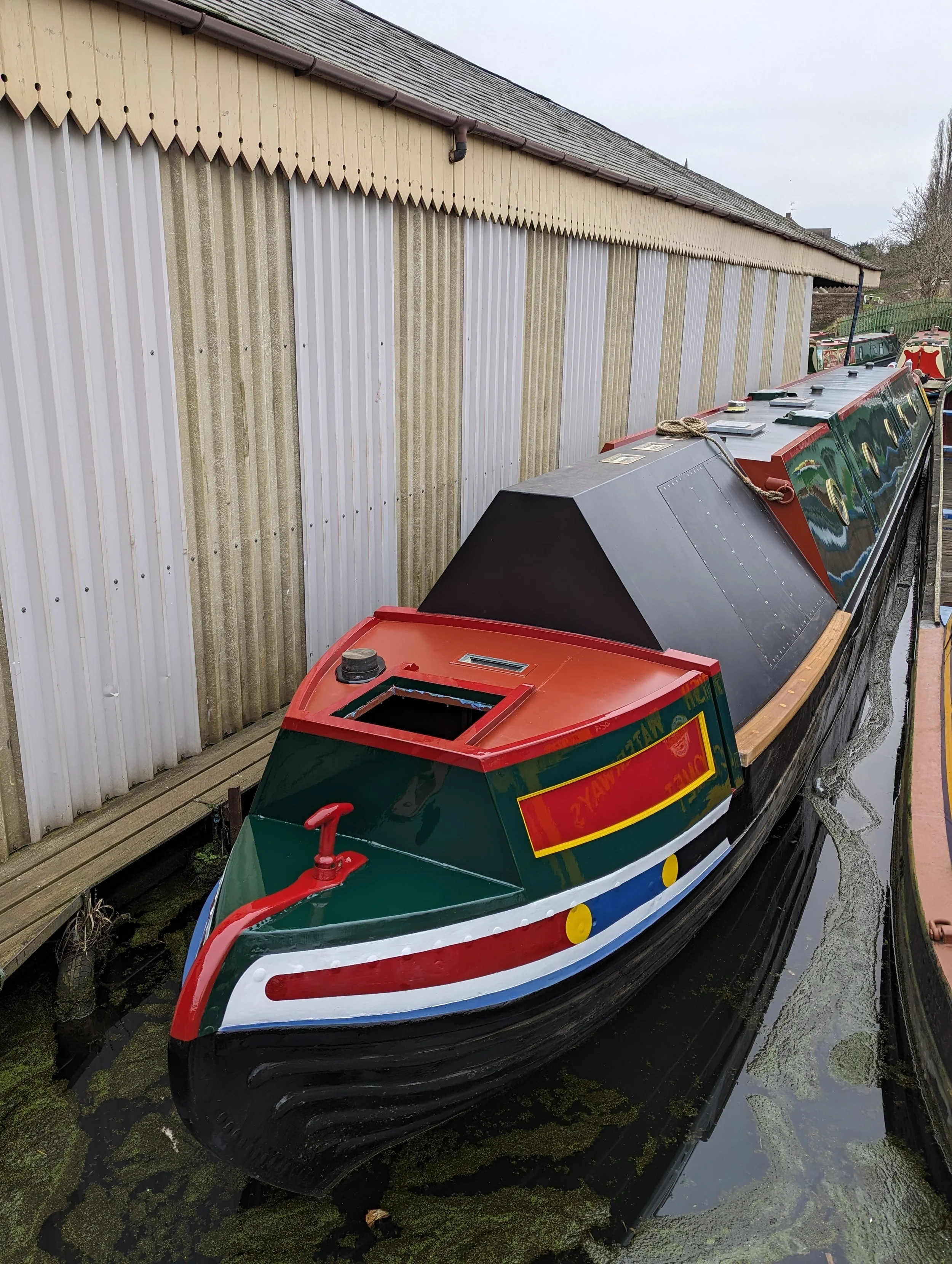 Gosport March 29, 2025 Gosport is an ex FMC butty which came to the yard for a conversion cabin, some hull work, a full repaint and new fore cabin panelling and handrails.